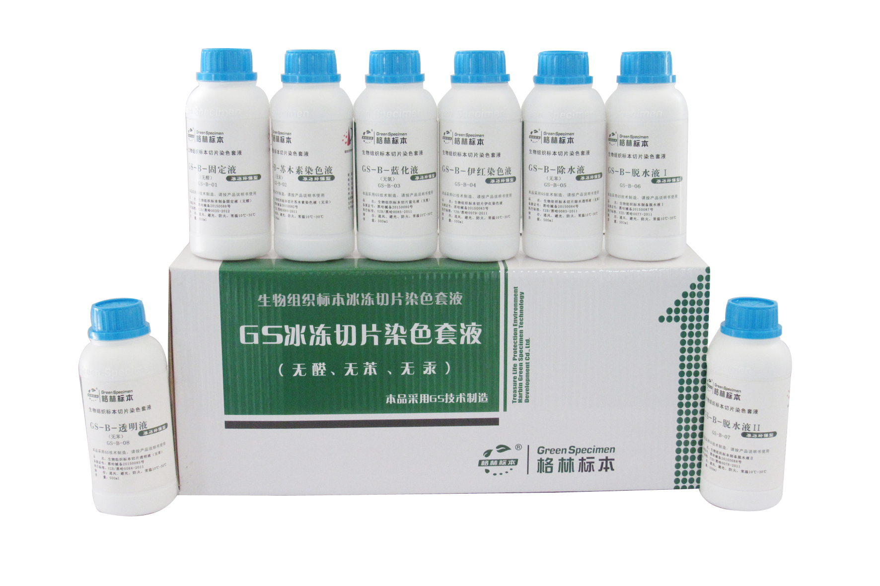 哈爾濱格林標(biāo)本技術(shù)開發(fā)有限公司為了免除甲醛、二甲苯、氧化汞等對(duì)于病理工作者身體及環(huán)境的危害,本著健康、環(huán)保、優(yōu)質(zhì)的原則,多年來(lái)一直致力于環(huán)保病理試劑的科研和開發(fā),經(jīng)不斷探索、嘗試和實(shí)踐應(yīng)用,***終研發(fā)出病理專用環(huán)保試劑“GS組織樣本制備及切片染色系列試劑”,該試劑不含甲醛、二甲苯、氧化汞等對(duì)人身和環(huán)境有極大危害的有毒化學(xué)試劑,其功效完全優(yōu)于目前大量使用的以甲醛、二甲苯為主的傳統(tǒng)病理試劑,是完全可以替代傳統(tǒng)有毒試劑并具有強(qiáng)烈革命色彩的全新環(huán)保試劑產(chǎn)品。